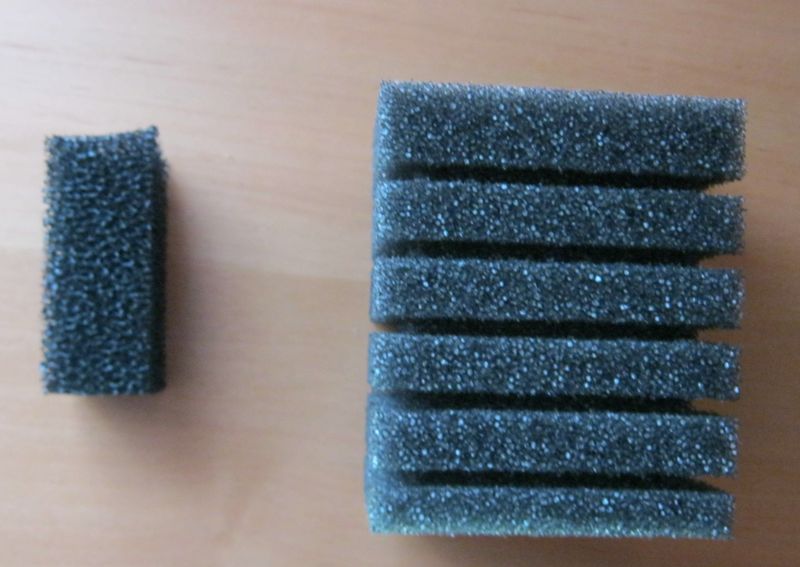 Решил написать тему об модернизации фильтра, может и повторюсь(раньше подобной темы нигде не замечал.) Думаю найдутся те кому может пригодится.Данный фильтр применяется для аквариума обЪемом примерно 30литров(чистыми). Главным недостатком подобных фильтров является малая площадь фильтрующего материала. Данную проблему я и постарался решить. Переделка очень простая. Для этого понадобились: 5-ти кубовый шприц, фильтрующая губка, новая присоска, кусок пластика(сделал лопатку для распределения выхлопа фильта) Думаю по фото все понятно. На второй фотографии для сравнения объем фильтрующего материала, до переделки и после.