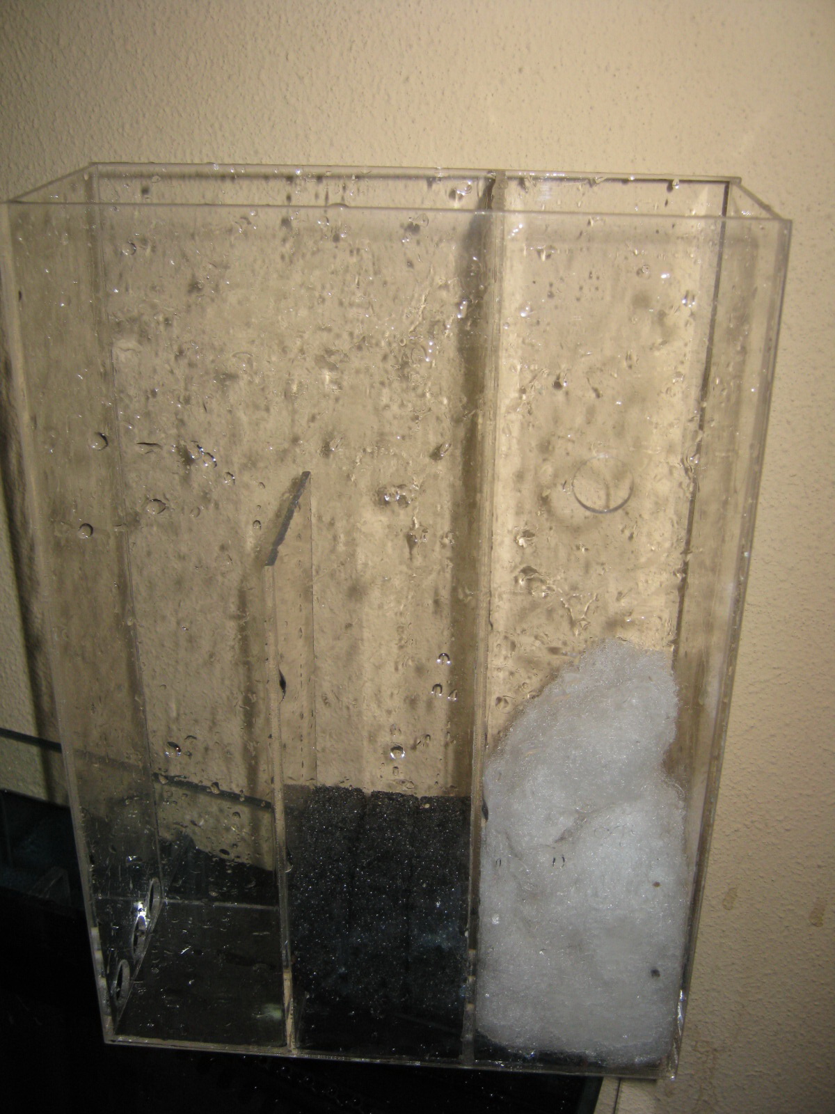 По наполнителям, на входе мочалки разных размеров+ сверху оставить пустое место, куда бросить что-то типа роголистника, дальше синтепон, потом можно керамзит, только его проварить и дать остыть в воде, чтобы не всплывал. В общем то все, ну можно пару улиток физ бросить в первом отсеке, для съедения излишка роголистника...