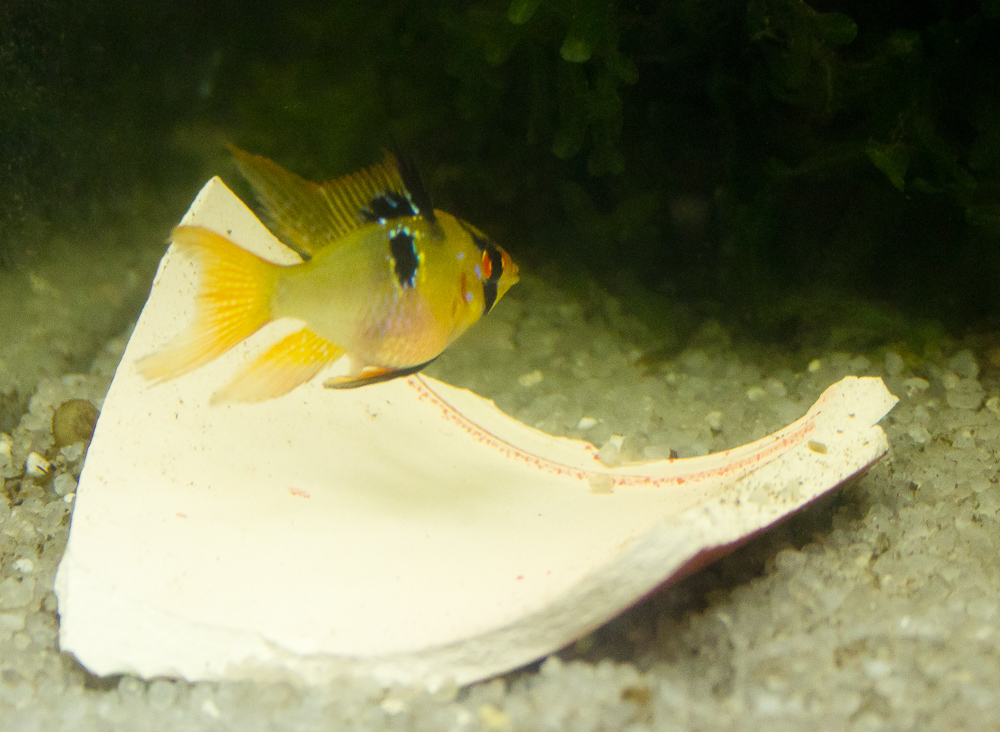 Вот, сегодня немного обустроили с Plankton для апистограмм аквариум, самцу канибалу решили дать еще один шанс, но убрали одну подозрительную самку, вообразившую себя самцом)) поместили черепки для нереста. Уже вечером образовалось две групировки. Посмотрим, что будет дальше.