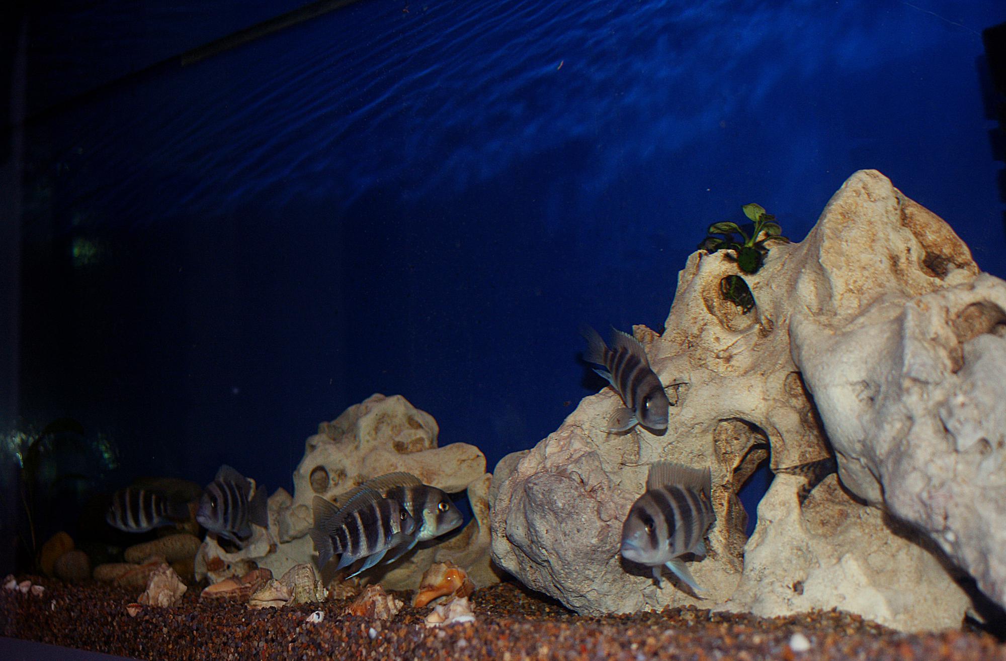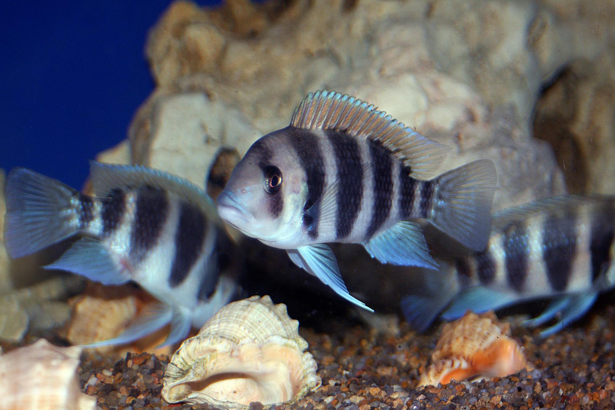 Я с самого начала начала активно ее закармливать, считая, что фронтозы должны кушать много и набрасываться на еду. Сейчас кормлю понемногу, начали кушать активней. Если корма бросаю мало, активность при кормежке повышается. Подметила, что нравится мидия, хек тоже ничего уходит. Успокоились, перестали прятаться и шугаться  Плавают размеренно себе по аквариуму, начались выяснения отношений.Одна, самая большая фронтоза заняла угол аквариума и посягнувший на это место, немедленно будет атакован