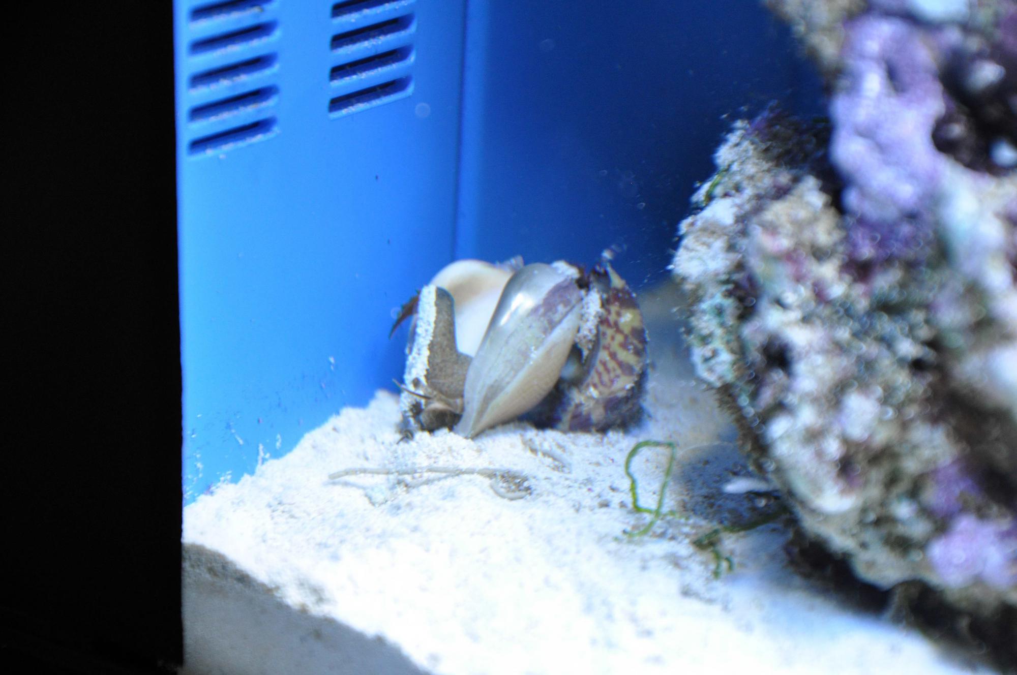 Сегодня отшельник откопал самого здорового стромбуса и попытался завладеть его раковиной, радео было ещё то я Вам скажу, но отшельник не собирался просто так отпускать такой жирный домик и упорно продолжал скакать на стромбусе пока стромбус не применил против обидчика какую то слизь которая спутала лапы отшельнику и позволила гигантскими скачками стромбусу скрыться.