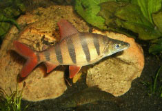 Золотой брызгун .Насколько мне известно пока не разводится в неволи , максимальный размер 15-18 см .Обитает в Бирме .В отличие от остальных Toxotes всю жизнь проводит в пресных водах .