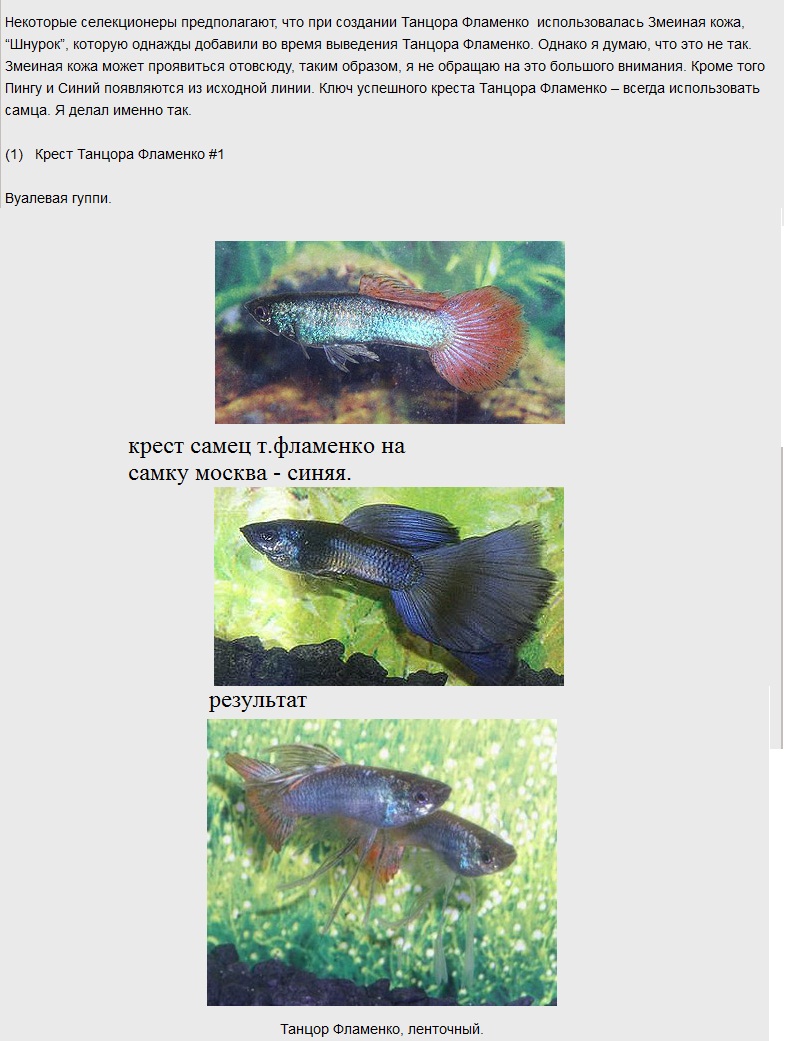 Андрей. Г., Тема сложная , гуппи с такими признаками я раньше не занимался. Сейчас прислали гуппи с признаком микариф , два помета получил , пометы ровные , одинаковые - расщепления пока не вижу 1,5 мес. Для сравнения фото ВВС взято от сюда - http://translate.googleusercontent.c...Y8c_JaFhIvqdvg