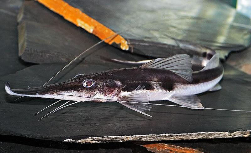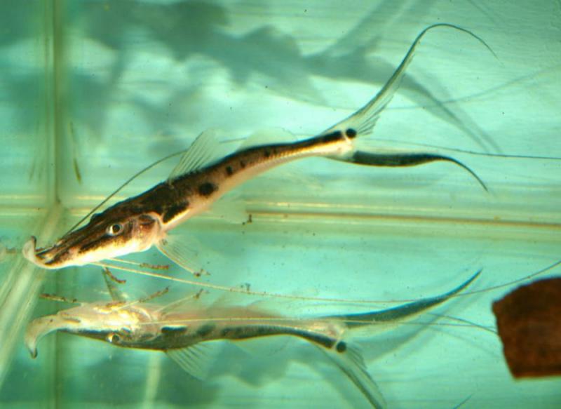 Platystomatichthys sturio, курносая платистома . Обитает в южной Америки , как и тигринус не превышает 50-55 см , что идеально подходит для большинства аквариумов с крупной рыбой .