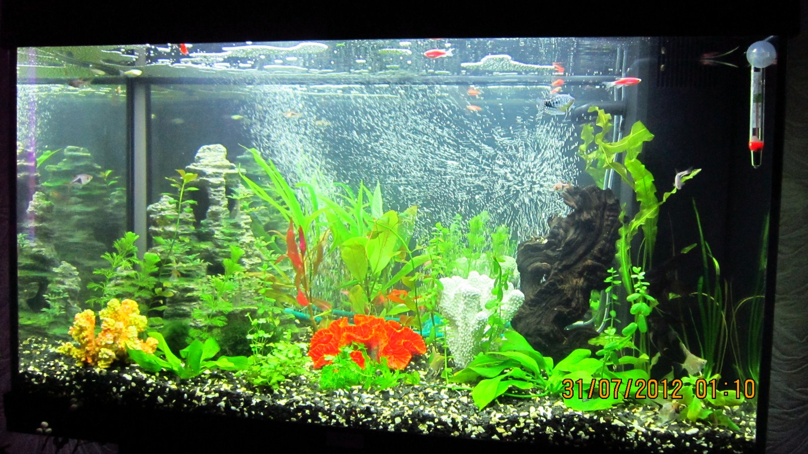 Через пару дней было куплено ещё несколико растений, 2 гурами, шесть данио, два вуалехвоста, два мраморных боция.
