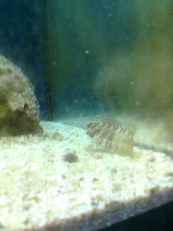 Стесняется  .У меня черноморский сфинкс,по приезду две недели не показывался вообще,думал все кранты ему,потом вылез совсем худой(живот прилип к позвоночнику),начал по чуть чуть ловить креветку при кормежке,схватит малюсенький кусочек и ныкается в камни на весь день.Приходилось выбирать определенное место для забрасывания корма,что бы течением еду подносило прямо к рассщелине из которой он выплывал  .Сейчас отъелся,осмелел,у занкла отбирает артемию  ,правда не во время кормежки вижу его редко