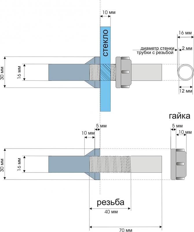Внимание! Папы бывают короткорезьбовые и длиннорезьбовые (я уже с этим сталкивался). Короткорезьбовых 1/2' , например, хватает на проход максимум 10мм стекла, в то время как длиннорезьбовыми можно пройти и 12мм.