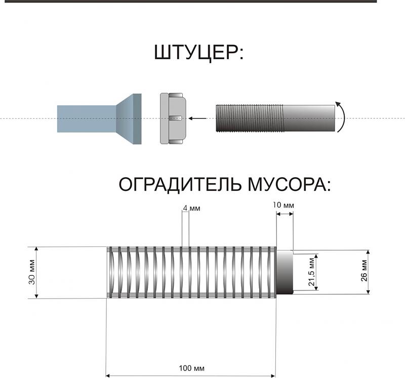 Предлагаю Вашему вниманию, ув. коллеги, оградитель мусора и штуцер в чертежах и в сборе. Нуждается в Ваших советах и доработках.