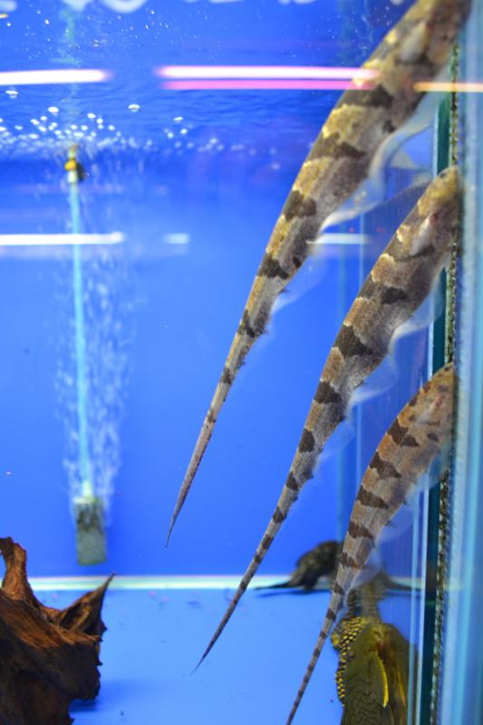 Получал этого ската 2 раза оба раза из Сингапура , научное название не указывалось , коммерческое в переводе (антенна ) второй раз (длинный плавник ) (длинный конец / неверное в смысли длинный хвост ), мои знакомые приобретали в Таиланде примерно под таким же названием . Первый которого я приобрел был в размере около 12см (тело )рос довольно быстро за пол года достиг примерно 25-28см , с ростом после 20см , та часть хвоста которая после шипа замедляет рост, сейчас этот скат живет у товарища длинна корпуса примерно 50-55 см длинна хвоста до шипа 50-55см вторая половина примерно 70см , в отличии от других Potamotrygon хвост более тонкий и узкий и длинна отличается . Почти вся длина хвоста имеет ярко белые вертикальные полосы , полосы от основания хвоста к концу уменьшаются в ширену . Мое предположение о видовой принадлежности Potamotrygon Menchacai тiger , слышал мнение о том что это гибрид на основе Reticulatus .Интересно было бы услышать и другие мнения .