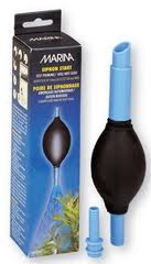 Такая груша на шланге облегчит запуск процесса тому, кто не расположен выпить из аквариума. А широкая всасывающая трубка, как на сифоне уменьшает ток воды и дает возможность не спеша собрать мелкий мусор с поверхности грунта. Оффтоп