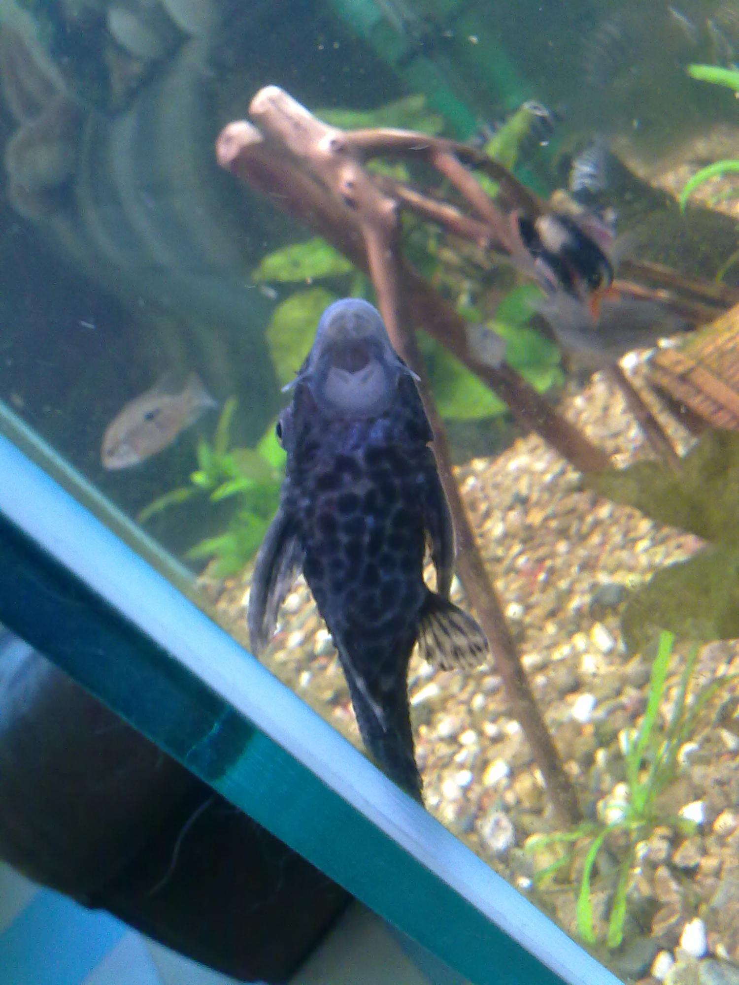 Щас у сома окрас такой что он не похож на Pterygoplichthys (Liposarcus) pardalis, а скорей всего на парчевого, хотя плавник не такой.