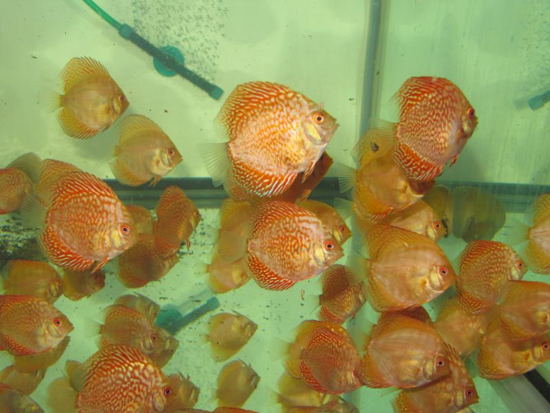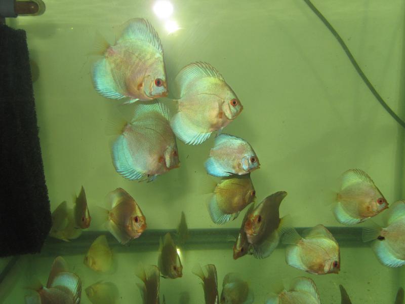 Почти 2 года назад я купил мальков дискусов из азии под названием "красный паук"(последнее фото).На остальных фото их 7-ми месячный малёк.Хотелось от опытных дискусятников узнать есть ли среди мальков "красные пауки" и как называются остальные рыбы???