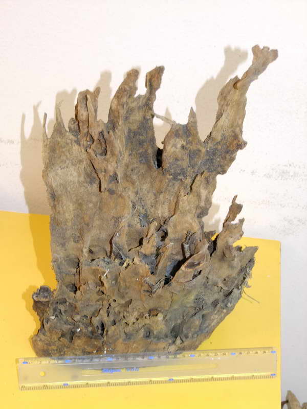 Итак, начнем. Самые дорогие и загадочные – это импортные (мопани или мангровые). Отличаются мопани от мангровых тем, что почти всегда окрашены в два цвета: снаружи они светлые, а сердцевина – темно-коричневая. Со временем они темнеют. Мангровые коряги сразу темно-коричневого цвета.