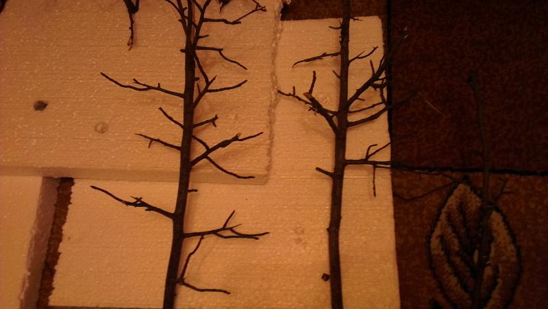 Сегодня поехал за коряжками.Нашел то,что надо.На одном стволе много отростков,которые торчат по всему диаметру палки.Резал коряжки разного диаметра,чтоб перспективу передать.На фото их видно.А также для пробы,пока не приехал аквариум, на коряжку привязал роталу индику,чтоб посмореть как оно будет расти.