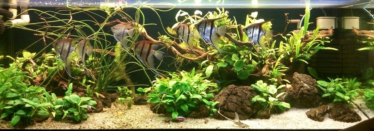 добавити б ще якогось Больбітіса, хоча б "Компакт" (мені здається, що у тебе він наче був колись) і якби ще прибрати "колючий дріт" (Крінум), то рибам було б більше місця для "поплавати" (місця малувато для таких красенів)