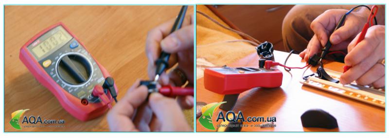 После разборки самого светильника было замерено напряжение, подаваемое на светодиоды.