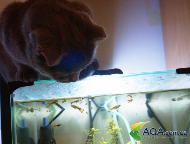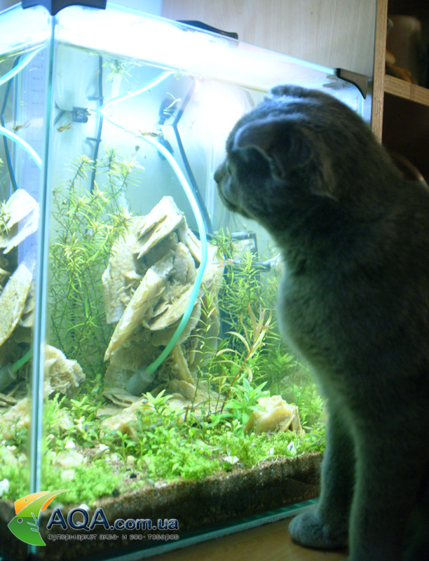 Видимо аквариум с хорошей энергетикой, раз кошку так к нему тянет)))