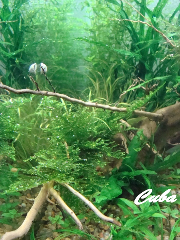 Растения-Все медленно растет, хороший рост только у мха. Кубе не хватает света ростки тянутся вверх. Оборудование-После ремонта по замене вилки фильтр был возвращен в аквариум, также был удлинен сетевой шнур.