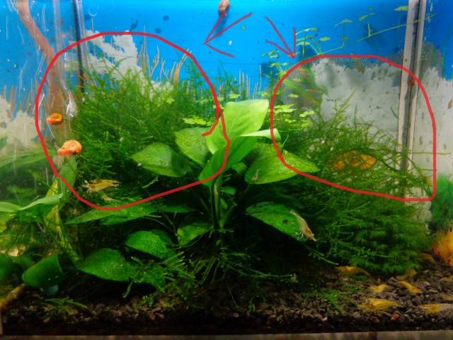 Я заметил чем меньше уровень воды,тем лучше растет (на фотке высота аквы 20 см,2 лампочки по 9 Вт).
