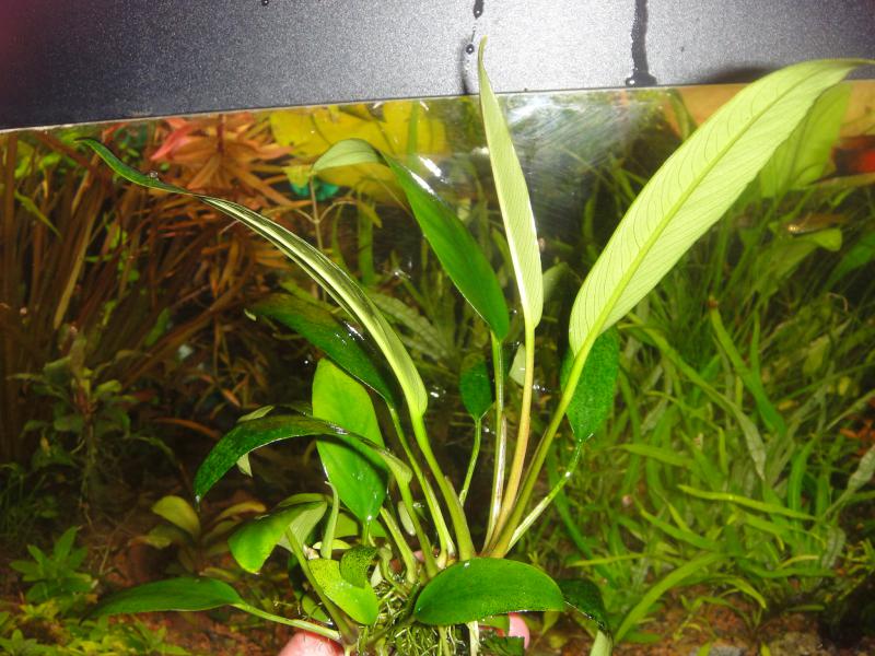 не путайте народ, у вас - НЕ минима, а одна из форм Афцели, лист растет вертикально, а не горизонтально, основание листа - ланцетовидное, а не сердцевидное, самая широкая часть листа - посредине, в надводной форме выростает около метра. К тому же у минимы лист очень мягкий.