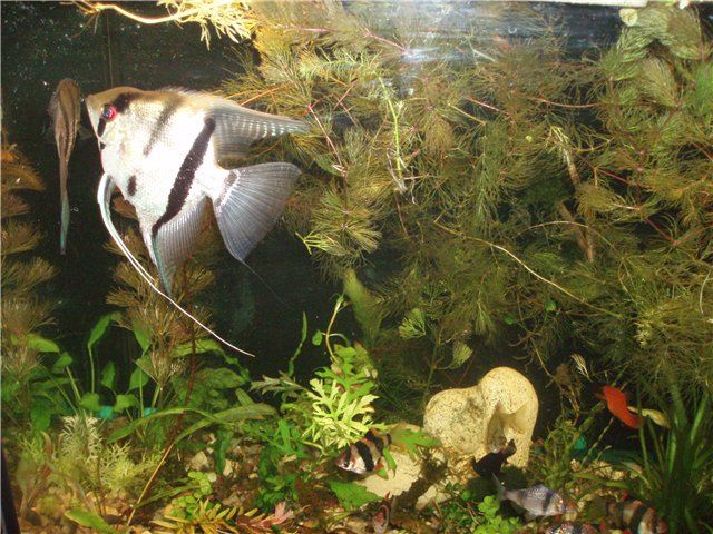 Аквариум приобрел совсем другой вид, а я другой «настрой». Думаю, что теперь не стыдно будет его даже «людям показать».  Достойные фото представлю позже, т.к. фотоаппаратом пока не обзавелся, а веб-камера привязана кабелем к компу и дает слишком общий вид. (см.фото) Да и время после апгрейда прошло маловато – многие растения еще не «устаканились» на новом месте.