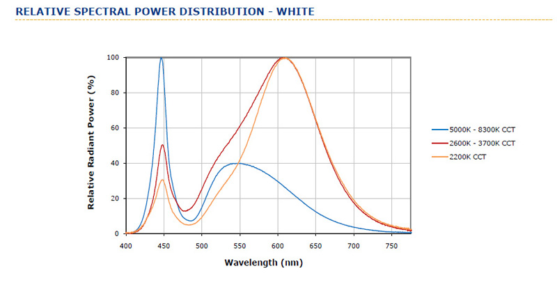 Теплые и холодные или возможно 4000-5000К практически перекрывают спектр, да и 660 нм. не мало.