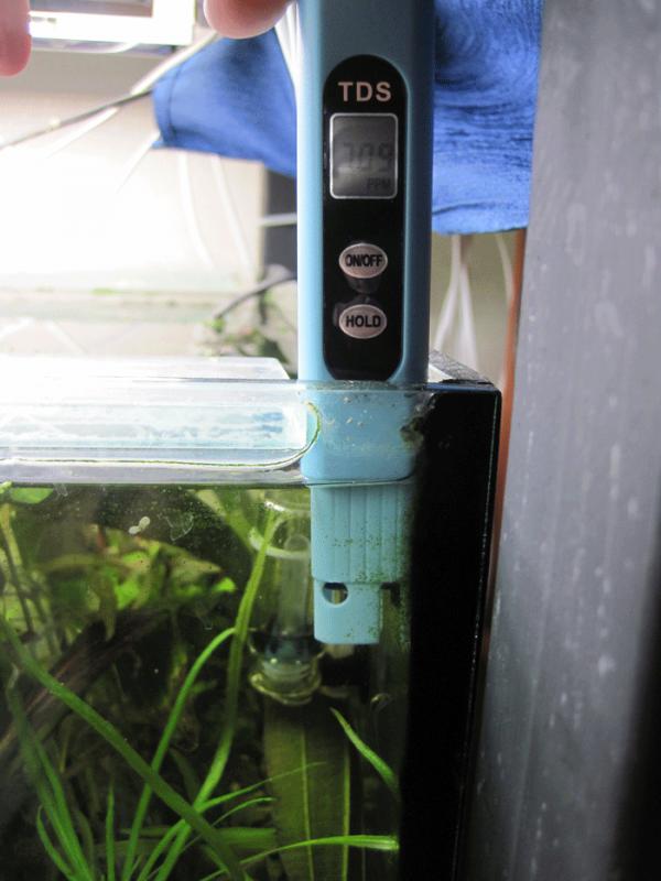 Как и обещал фото дропчекера (правда он у меня самодельный потому есть ньюанс динамики, правда на цвете индикатора это не сказывается))) Ну и ТДС замер дабы не быть голословным (его показатели в аквариумной воде почему-то отличаются от водопроводной в БОЛЬШУЮ сторону, думаю из-за УДО)