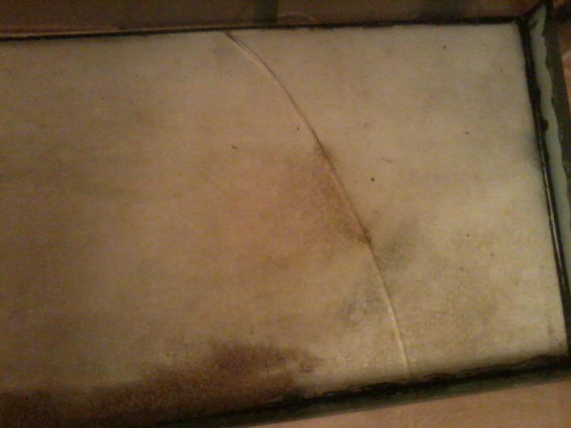 Тепер по суті - дно тріснуло від напружень , а напруження виникли від не зовсім рівної поверхні підставки і дуже тонкої прокладки між акваріумом і підставкою , яка мала-б ці нерівності і напруження знімати .