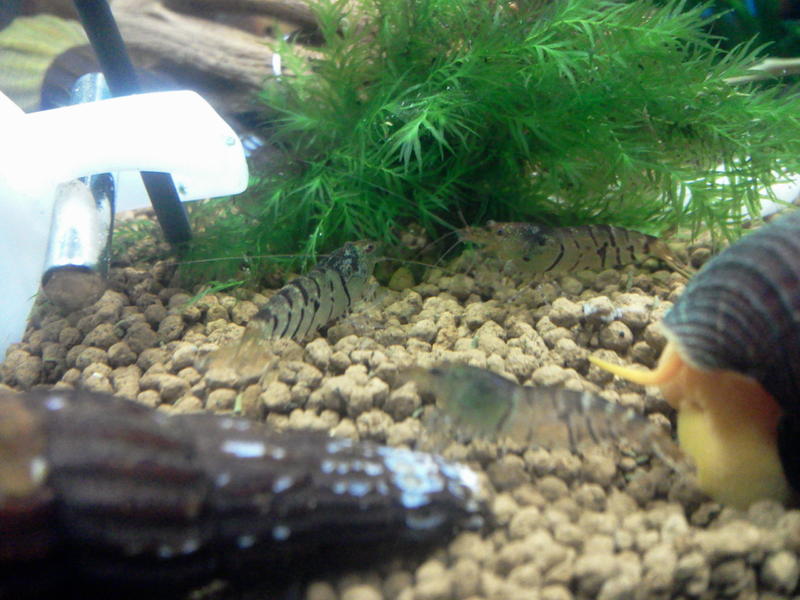 та фото можно, но только те же полосочки, только в профиль :-)), живут по-тихоньку, плодятся, но поднимается далеко не весь, сейчас насчитал 18 особей, был десяток, грешу на "грубую" реминерализацию, но пусть уж привыкают :-))
