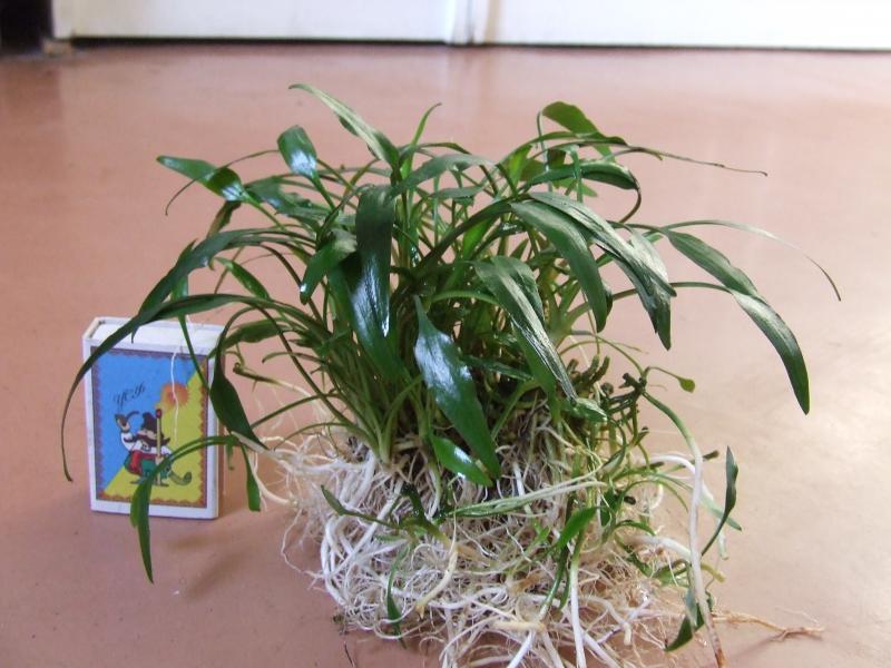 Предлагаю вот такую замечательную крипту - растет маленькая - до 10 сантиметров (проверено за несколько лет в разных аквариумах), а при сильном свете и малом столбе воды вообще всего до 5 - 6 см . Правильное название ее не знаю.
