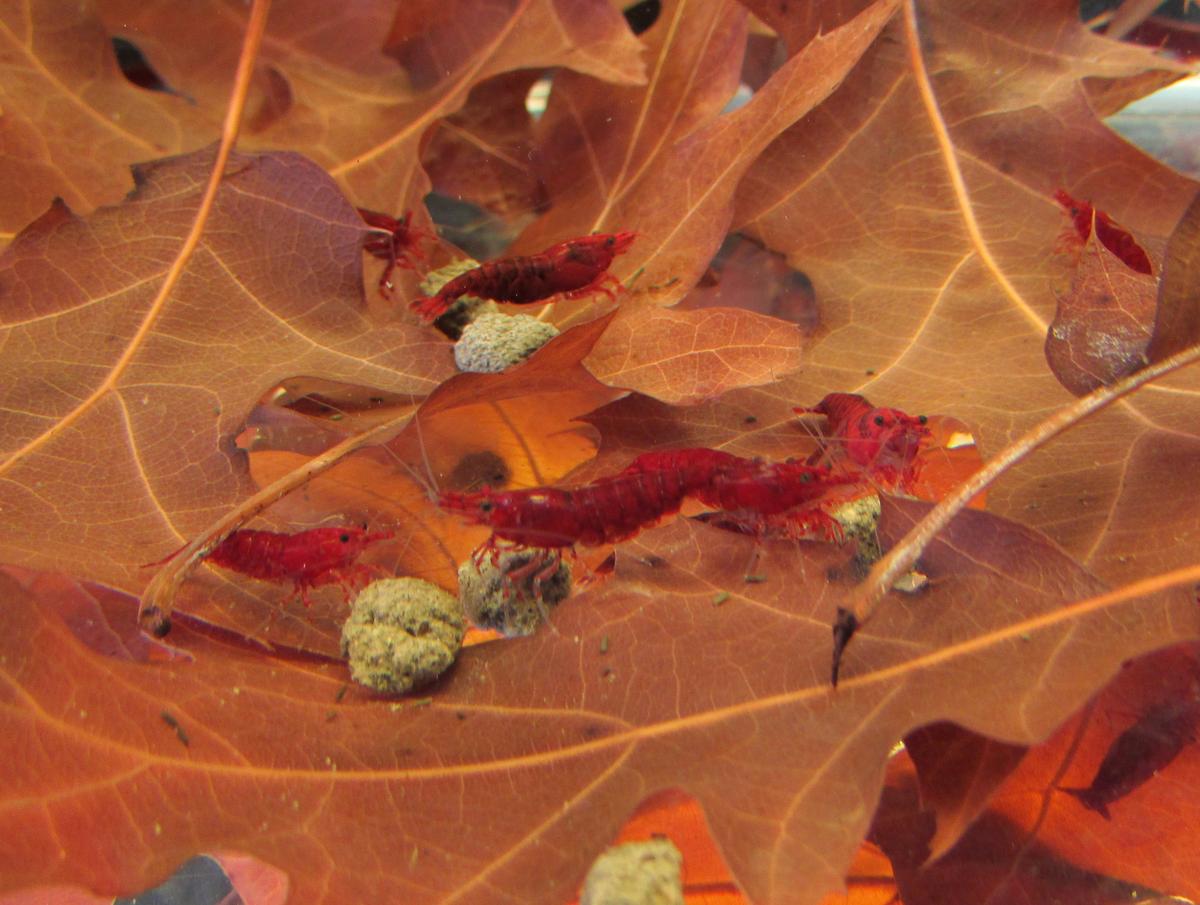 Всю креветку кормлю только этим кормом, иногда бросаю листья плодовых деревьев и ягодные.