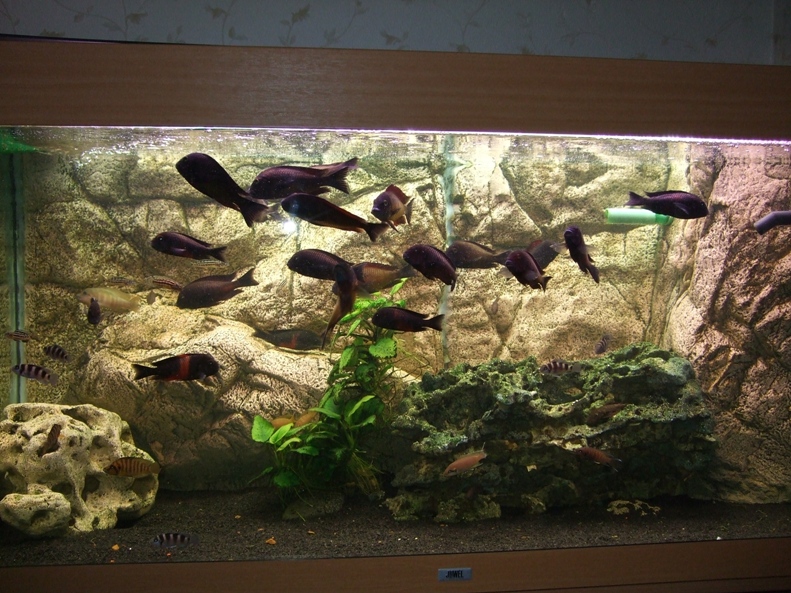 Выношу на суд общественности цихлидник с Тангой после ускоренного перезапуска в январе 2008 года. Есть рыбки, которых раньше не показывал ввиду младенческого их возраста.
