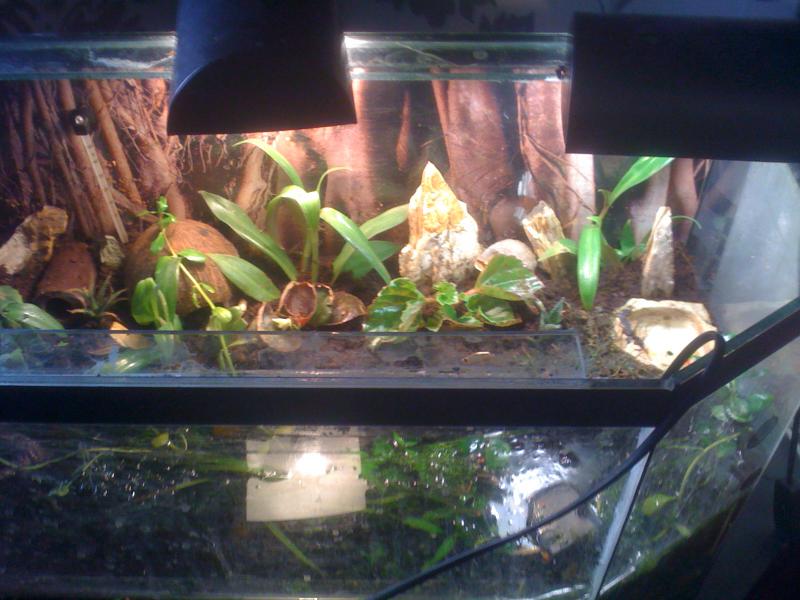 население:1-мангровый и 3 вампира(в дальнейшем планирую увеличить поголовье) в водной части 2-лягушки дюймовочки. аква на 120л