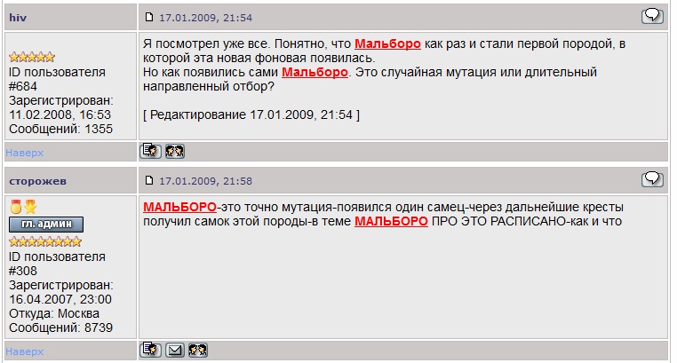 ... А спросите например у российского селекционера Сторожева В.В. - от крестов каких пород он получил свою породу ... ... или *мальборо* .  . Так он вам и раскажет .