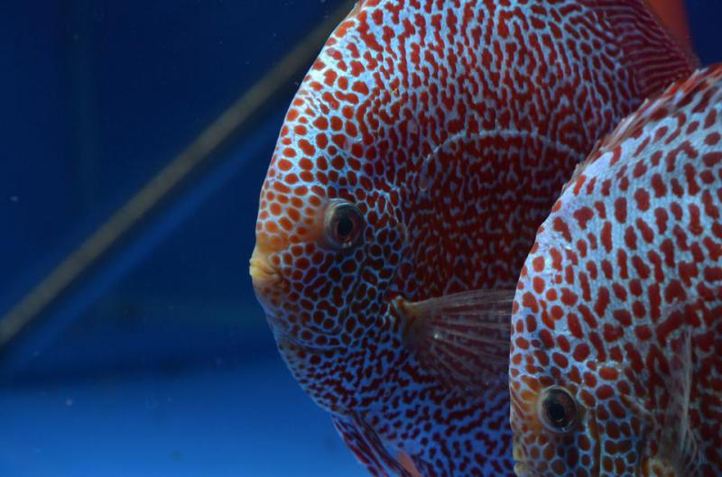Tiger stripe / checkerboard turquoise, мама тигр (крови Lucky Tropical Fish Farm ), папа - чеккерборд (S.G. Discuscoltura S.r.l., ферма в Италии www.sgdiscus.com.)