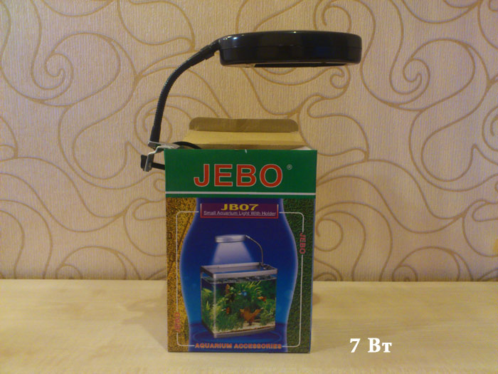 Jebo JB13, JB9, JB7 - компактные мини-светильники для освещения небольших аквариумов любой формы. Закрепляются на стенку аквариума с помощью винтового крепления, выполненного из надёжной пластмассы. Гибкий металлический держатель позволяет оптимально направить освещение в нужное вам место.