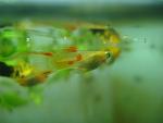 у ваших корпус получше... мои мелкие совсем.. может корм не подошел, хотя черноголовки вон какие все огромные... в основном хлопья давал + циклоп, мороженный мотыль и артемию, но 90% хлопья тетра. кстати, черноголовки постоянно отщипывают корни у ряски...