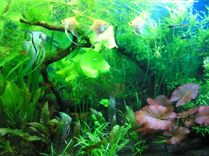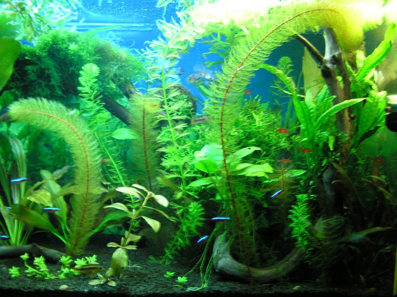 Наверное правильней было назвать тему-работа над ошибками..Сказать что побудило меня делать перезапуск 250 литрового аквариума для меня не составляет труда.В первую очередь общее состояние банки после летнего сезона,когда подменами водой из под крана,свел весь травник на нет.Проблемная у нас в Миргороде водичка.Вторая проблема была в грунте,при перезапуске пять лет назад сэкономил на покупке нормального.Купил 10кг. на верх,а на низ чего только не пошло,и керамзит и мелкая морская галька.В конечном итоге все смешалось и к чему привело объяснять не буду,кто с опытом тот поймет.Ну и третья проблемка, полный компот по рыбкам.После спуска на зиму 4 банок,большая часть рыбок разошлась,а остальную пришлось до лучших времен распихать по оставшимся.Ну и конечно повлияло впечатления после регистрации на форуме-чего греха таить.Одним словом месяц назад понял что созрел.За это время были закуплены необходимые материалы и проведена попутная работа.Вот и долгожданный день 13 ноября,Из дому всех спровадил от греха подальше и...Понеслась душа в рай.  Разгрузив и хорошо вымыв слабым раствором соляной кислоты аквас приступил к созданию своего видения биотипа Амазонки.С левой стороны приклеил вертикально "бревнышко",в права установил распылитель СО2.Первоначально на дно засыпал уголь березы(жаль больше не достал).Потом в ход пошел питательный грунт в количестве 5кг.(купил по форуму).Залил отобранным илом из старой закладки.  Свеху положил по размерам строительную сетку и засыпал приобретенной в Ароване гранитной черной крошкой фракцией 2-3мм.в количестве 40кг.(мыл часа 2,но за такую цену,можно и помучаться).  К коряге закрепил 4 вида анубиаса и 4 попоротника,плюс мох(приобрел все благодаря опять таки форуму)  Ну а дальше дело времени.Только воды дождевой не хватило пришлось на такси по знакомым вечером помотаться,все равно литров 30 так и не хватило.буду ждать дождя.Фильтр соответственно не промытый погнал работать уже в новом аквасе.  И наконец в 10-00 работа практически завершена...Кроме ранее перечисленных растений,было высажено 5 видов Эхов,нимфея красная,3 крептокорин,2 перостолистника,людвигия рубин и т.д.От плавующих в этот раз отказался.Остался последний штрих переделать освещение,лампы будут на днях.думаю на следующие выходные осилю и это.долго эксперементировал и остановился на экономках.Напоследок-жалобы ,просьбы,предложения -в письменном виде.Р.С.Водичка еще мутноватая.Далее будет.