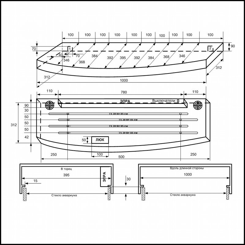 - предназначена для прямоугольного аквариума размерами 1000х400;