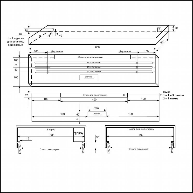 Крышка 600х300 на 2х24 Вт Т5