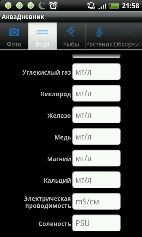 Уже в течение нескольких недель работаю над созданием Android-приложения для аквариумистов, предназначенного для ведения аквариумного дневника. Пишу для собственных нужд, но понимаю, что потом не смогу не выбросить его в свободный доступ. Большая часть работы уже позади. Многим из Вас подобная программа будет интересна. Пожалуйста, выскажите свои мысли по функциональности создаваемого приложения, свои идеи и предложения. Постараюсь все учесть и в скором будущем доделать удобный и качественный продукт. Пока реализованы следующие возможности: