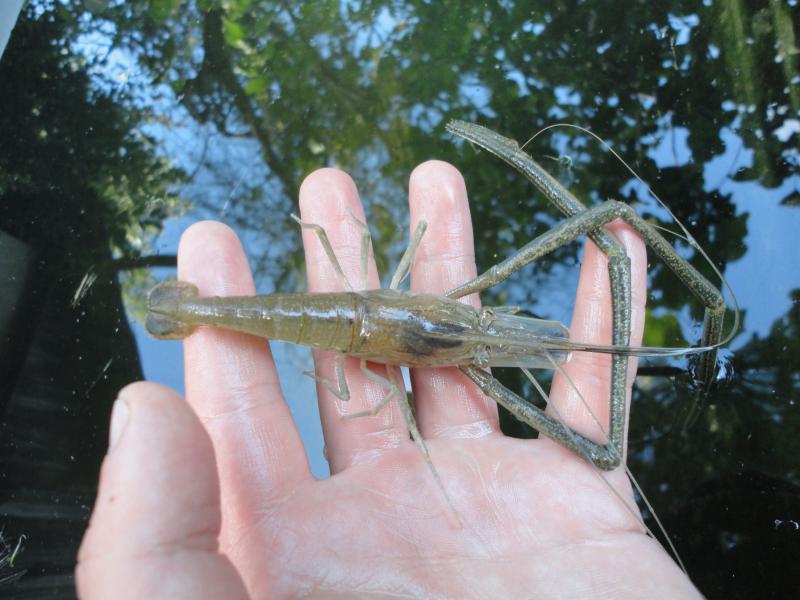 За 20 минут поймал раколовкой трех монстриков -двух длинопалых самцов и самку с икрой. В прошлом году мне такие половозрелые особи не попадались. Правда сейчас не попалось ни одной молодой прозрачной креветки.