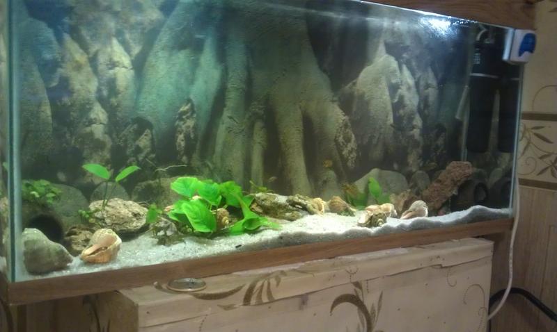 ну я думаю муж вам поможет) в следующий раз пользуйтесь глицерином при поклейке фона...пузерей не будет...рыбе та фон побарабану..но на форуме полно борцов с эстетичностью оформления в том числе и фона...я помню как сам на 350 литров фон переклеивал....мороки не малые...терпения и легкости =) я уже сбился со счетов сколько у вас аквариумов..=) так держать..мне увы жил прощадь не позволяет большое количество...