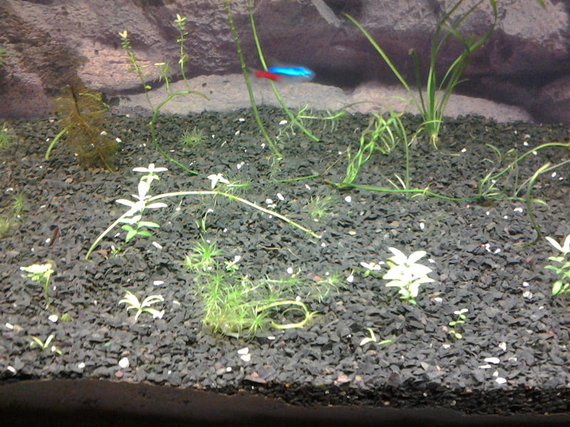 Планируем травник с мирными симпотичными рыбками.На данный момент аквариум запустили на нашем черноземе,сверху базальт.Обычная донецкая вода.