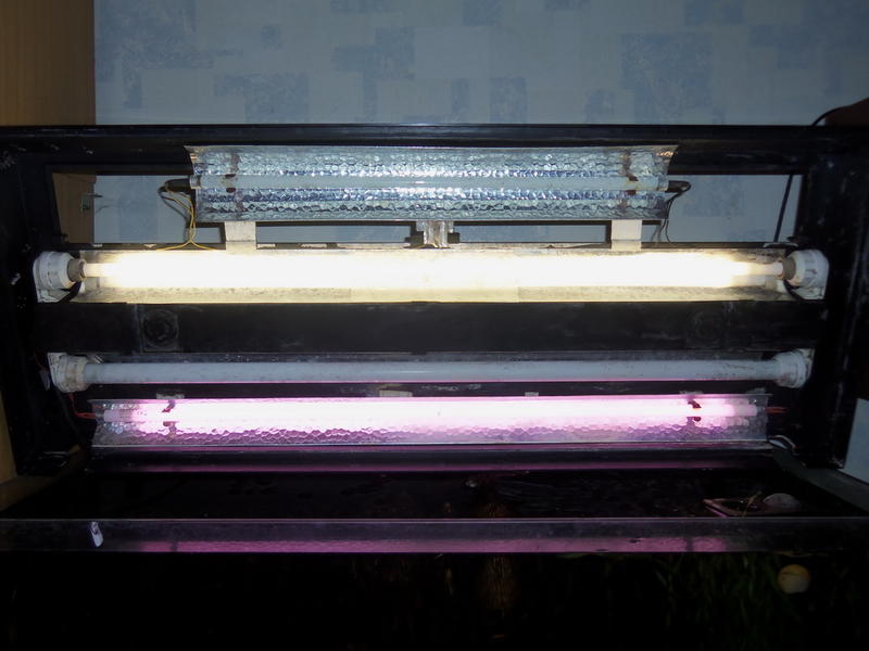 Кришка Juwel установлен трацепевидний отражатель, 2 лампи Т5 39W на электронном баласте, 1 лампа Т8 30W, лампа T5 24w + отражатель типа igla.
