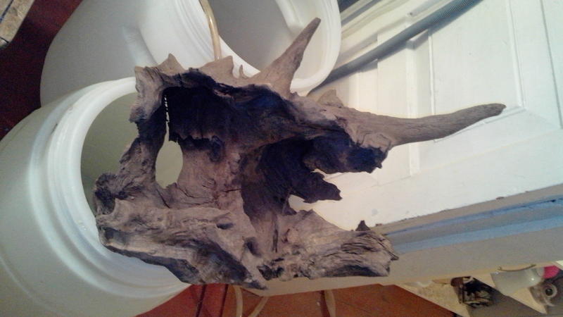 2. Коряга большая, корень дуба, слегка красит воду, похожа на голову с рогами существа из фантастического фильма, размер ок. 50*35*25.