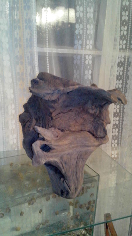 2. Коряга большая, корень дуба, слегка красит воду, похожа на голову с рогами существа из фантастического фильма, размер ок. 50*35*25.