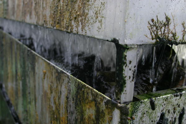 Внизу фотографии "душевого" фильтра на Момотаро Кои Фарм (Окаяма, Япония). Вода насосом подается в верхнюю емкость, где распыляется с помощью дырок в трубе. В качестве загрузки используется специальная керамика (Bacteria House), которая очень эффективна в процессах очистки воды.