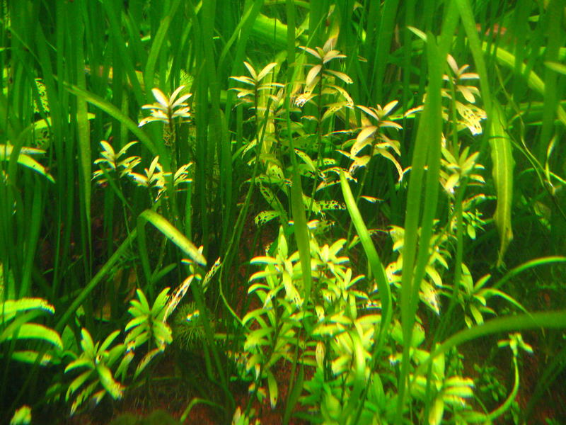 лимонник и гигрофила в дырках, людвигия бледная, а была ярко алая долгое время.