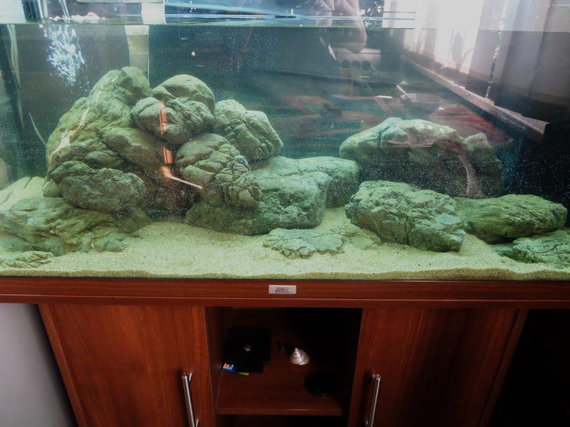 Запустила буквально со старта, тем что было. Результат не ахти, самой не нравится. Но, там отнерестились принцессы, и было жалко разрушать их семейство, поэтому временно оставила как есть. Да и дочка все время с удовольствием наблюдаем за ними. А вчера получила камни от Любомира второй поставкой, именно для этого аквариума. Имею и планы, и возможность, сегодня заняться этой перестройкой. Результат будет (очень на это надеюсь) ближе к вечеру...